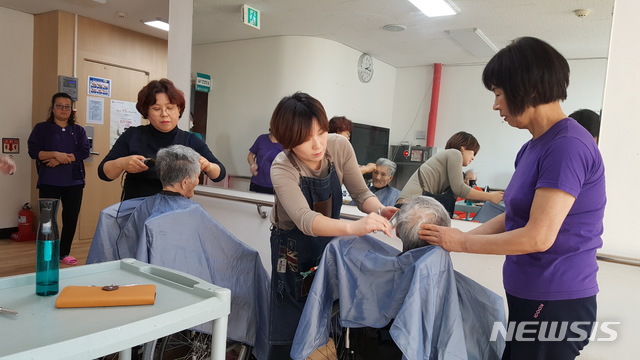 【울진=뉴시스】강진구 기자 = 한국수력원자력(주) 한울원자력본부(본부장 이종호)는 28일 오전 경북 울진군 관내 소외계층을 대상으로 설맞이 ‘헤어스케치 봉사단 이·미용 재능 나눔 봉사 활동’을 실시했다.이날 ‘헤어스케치 봉사단’은 동산복지마을요양원을 시작으로 드림돌봄센터와 평해노인요양원, 울진군노인요양원 등 관내 복지시설을 방문해 이·미용 봉사활동을 펼쳤다.2019.01.29.(사진=한울원자력본부 제공)
