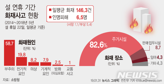 [그래픽]설 기간 화재사고 일평균 146.3건