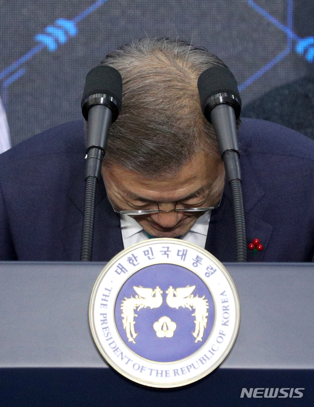 【광주=뉴시스】박진희 기자 = 문재인 대통령이 31일 오후 전남 광주광역시청사에서 광주형 일자리 투자 협약식을 마치고 인사하고 있다. 2019.01.31.