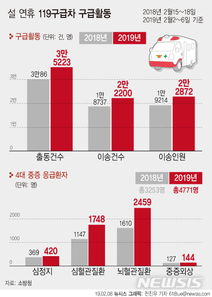 [그래픽]설 연휴 119구급대 3만5223회 출동