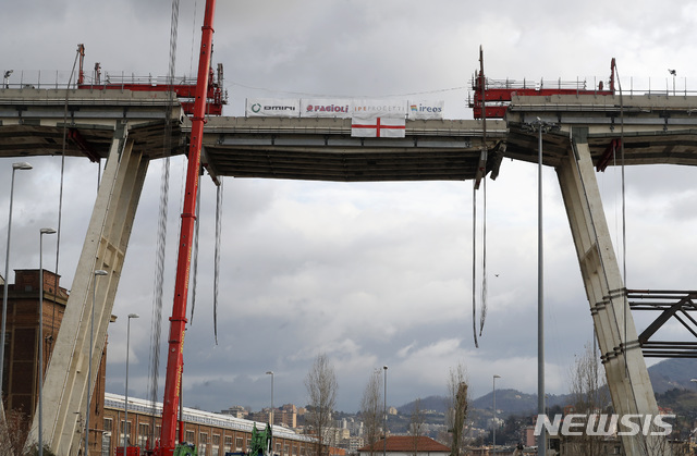 모란디 다리는 지난 2018년 8월 갑작스레 불어닥친 격렬한 태풍으로 제노바시 한 공업단지 위로 무너지면서 43명의 목숨을 앗아간 바 있다. 2019.02.09.