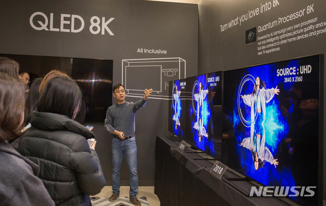 【서울=뉴시스】 추상철 기자 =지난 8일 경기 수원시 삼성디지털시티에서 삼성전자 연구원이 2019년형 QLED 8K 화질 시연을 하고 있다. 2019.02.10. (사진=삼성전자 제공)