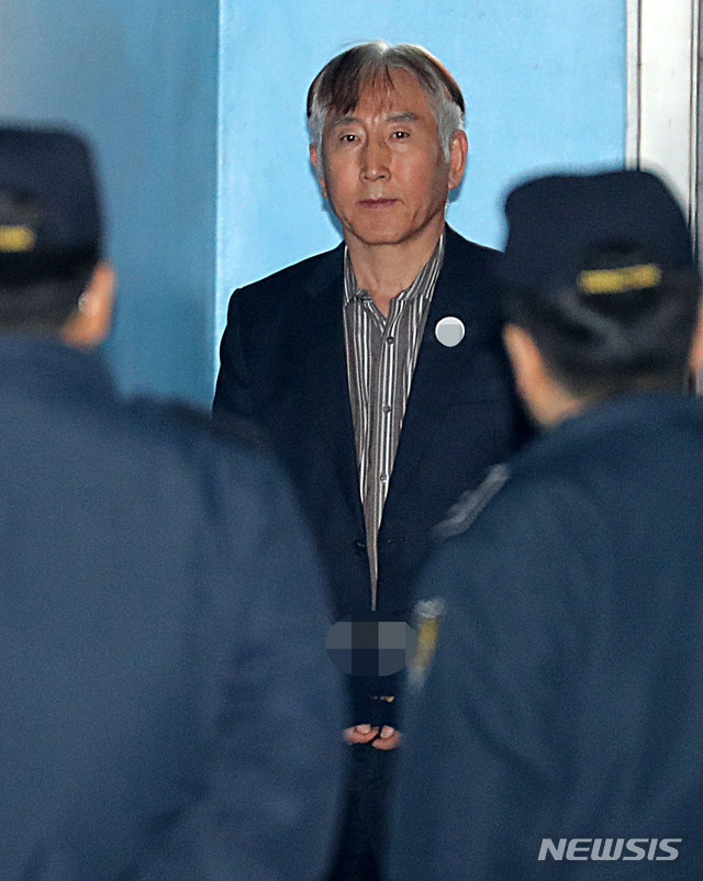 【서울=뉴시스】박주성 기자 = 경찰 댓글공작을 지시한 혐의로 구속된 조현오 전 경찰청장이 11일 오전 서울 서초구 서울중앙지방법원에서 열린 공판에 출석하고 있다. 2019.02.11.
