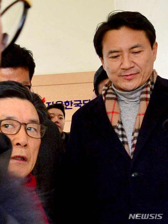 【광주=뉴시스】 신대희 기자 = 12일 광주 북구 중흥동 자유한국당 광주시·전남도당사에서 김진태 의원이 당원과 간담회를 마친 뒤 차량에 탑승하려고 이동하고 있다. 2019.02.12.