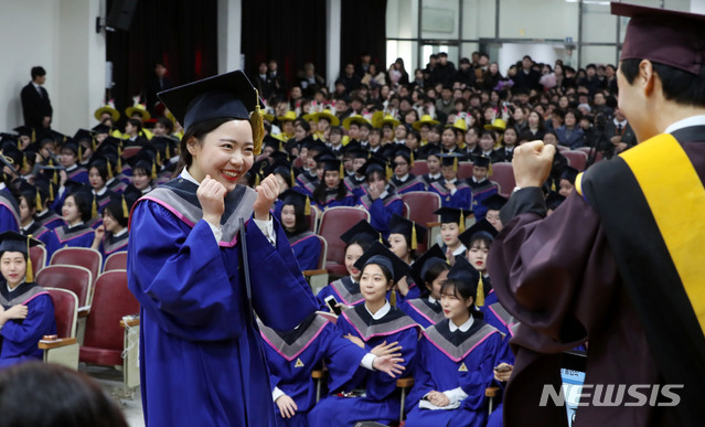 【서울=뉴시스】홍효식 기자 = 13일 오전 서울 관악구 서울여자상업고등학교에서 열린 제89회 졸업식에서 졸업생들이 선생님과 포옹하기 위해 달려가고 있다. 2019.02.13.