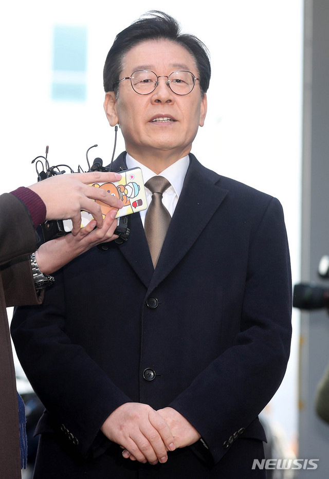 【성남=뉴시스】추상철 기자 = 이재명 경기지사가 14일 오후 경기 성남시 수원지방법원 성남지원에서 '직권 남용과 선거법 위반 혐의' 등과 관련 5차 공판에 출석하며 입장을 밝히고 있다.