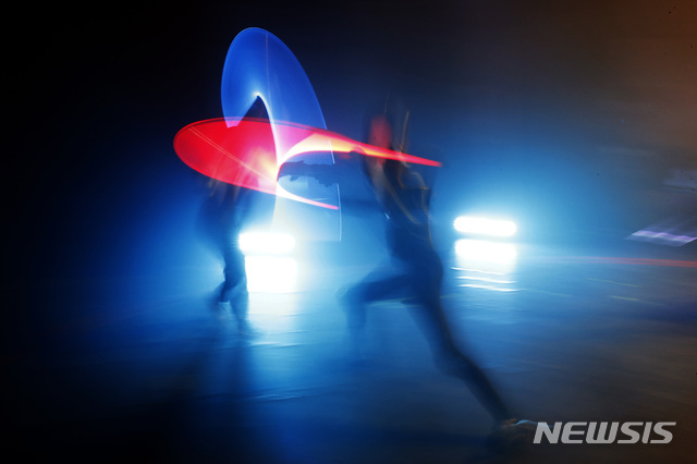 사진은 지난 10일 파리 북쪽 보몽 쉬르 우아즈에서 열린 라이트세이버 토너먼트 참가자들이 경기하는 모습. 2019.02.18.