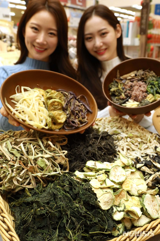 【서울=뉴시스】18일 서울 롯데마트 서울역점에서 모델들이 정월대보름 오곡밥과 건나물을 선보이고 있다.