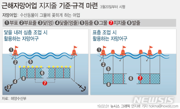 해양수산부는 이 같은 내용을 골자로 한 '근해자망어업의 지지줄 기준·규격에 관한 고시'를 제정, 내달 20일부터 시행한다. (그래픽=안지혜 기자)