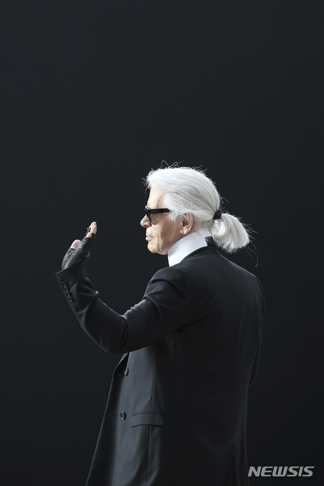 【파리=AP/뉴시스】지난 50년간 디자인뿐 아니라 자신의 트레이드마크인 흰색 말총머리, 풀 먹인 빳빳한 옷깃, 수수께끼의 짙은 안경으로 하이패션 업계를 주름잡았던 샤넬의 상징적인 패션 디자이너 카를 라거펠트가 85세의 나이로 별세했다.