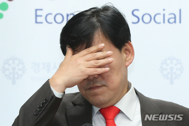 【서울=뉴시스】이윤청 수습기자 = 이철수 노동시간제도개선위원회 위원장이 19일 오전 서울 종로구 경제사회노동위원회에서 탄력근로제 확대 적용 문제에 대한 제8차 전체회의 논의 결과를 발표하며 머리를 넘기고 있다.