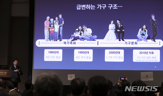 【서울=뉴시스】최진석 기자 = 김세용 서울주택도시공사 사장이 20일 오전 서울 중구 한국프레스센터 국제회의장에서 열린 서울주택도시공사(SH공사) 30주년 기념 '스마트 시민기업' SH비전 선포식에서 비전 프리젠테이션을 하고 있다.