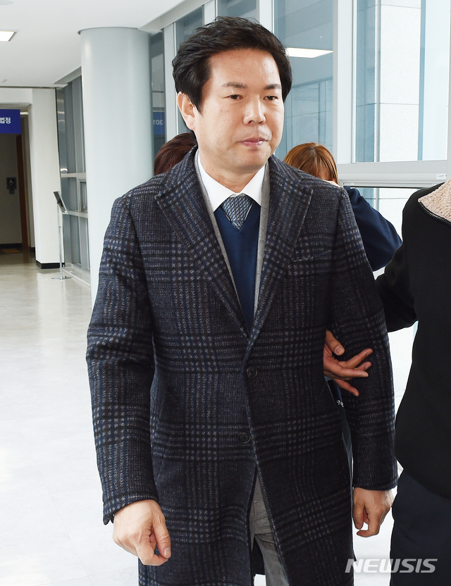 【대전=뉴시스】함형서 기자 =자본시장법과 특정경제범죄 가중처벌등에 관한 법률 위반 등의 혐의를 받고 있는 임동표 MBG(Made By God) 그룹 회장이 20일 오후 영장실질심사가 열리는 대전지방법원 법정으로 향하고 있다. 2019.02.20.