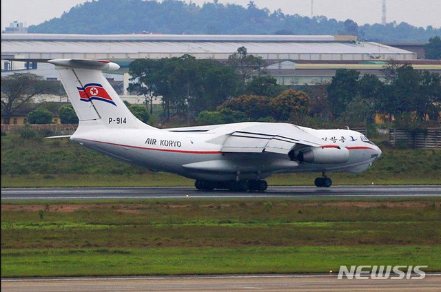 베트남 하노이 공항에 내리는 북한 고려항공 비행기