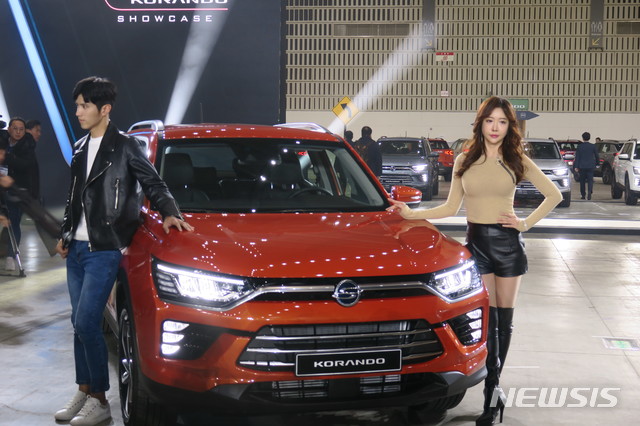 【인천=뉴시스】 김민수 기자 = 26일 오전 인천 송도컨벤시아에서 쌍용자동차가 신형 '뷰티풀 코란도'를 발표한 가운데 모델들이 포즈를 취하고 있다. 2019.02.26.