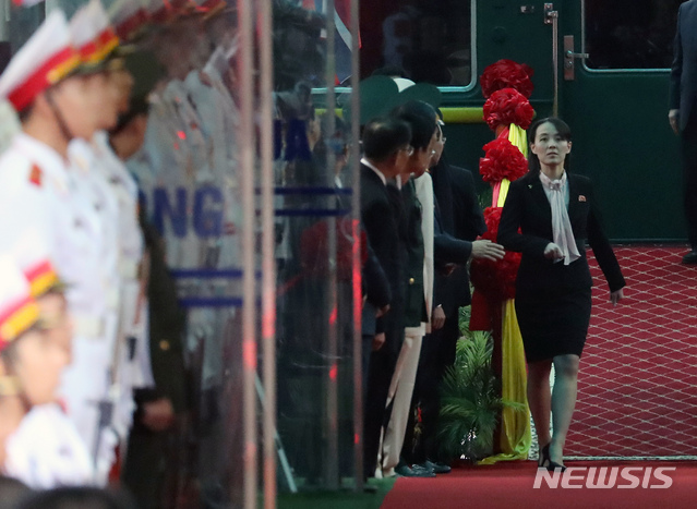 【랑선(베트남)=뉴시스】고승민 기자 = 제2차 북미정상회담 일정을 하루 앞둔 26일 김정은 북한 국무위원장이 특별열차를 타고 베트남 랑선성 동당역에 도착, 내리기에 앞서 김여정 제1부부장이 동선을 체크하고 있다. 2019.02.26.