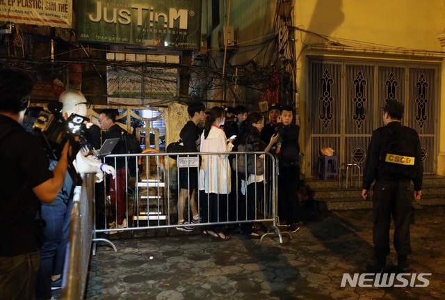 【하노이(베트남)=뉴시스】고승민 기자 = 제2차 북미정상회담이 결렬된지 하루가 막 지난 1일 새벽 김정은 북한 국무위원장의 숙소인 베트남 하노이 멜리아 호텔에서 리용호 북한 외무상이 긴급 기자회견을 개최한 가운데 북측이 제한된 취재진만 입장을 허용해 입장하지 못한 취재진이 도로에서 하염없이 기다리고 있다. 2019.03.01.