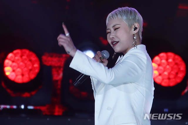 【서울=뉴시스】박미소 수습기자 = 가수 치타가 1일 오후 서울 여의도 국회에서 열린 '3·1운동 100주년 One K 콘서트'에서 I'll be there을 공연하고 있다. 2019.03.01.