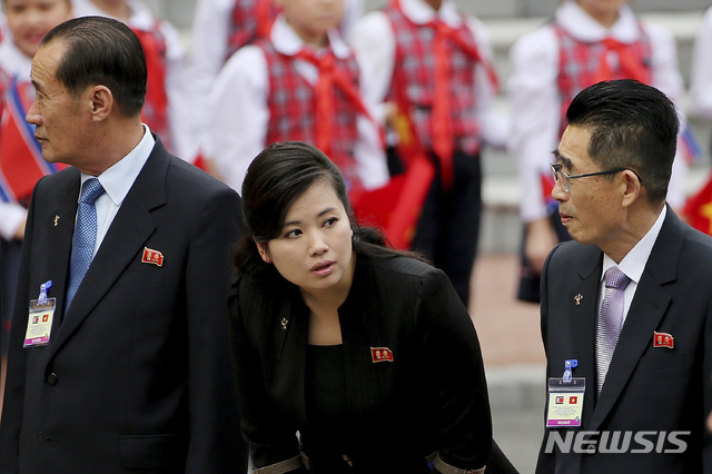 【하노이=AP/뉴시스】김정은 북한 국무위원장이 1일(현지시간) 베트남 하노이의 주석궁을 방문해 응우옌 푸 쫑 베트남 국가주석과 환영식에 참석한 가운데 현송월 북한 삼지연관현악단장이 다른 수행원들과 함께 모습을 보이고 있다. 2019.03.02.