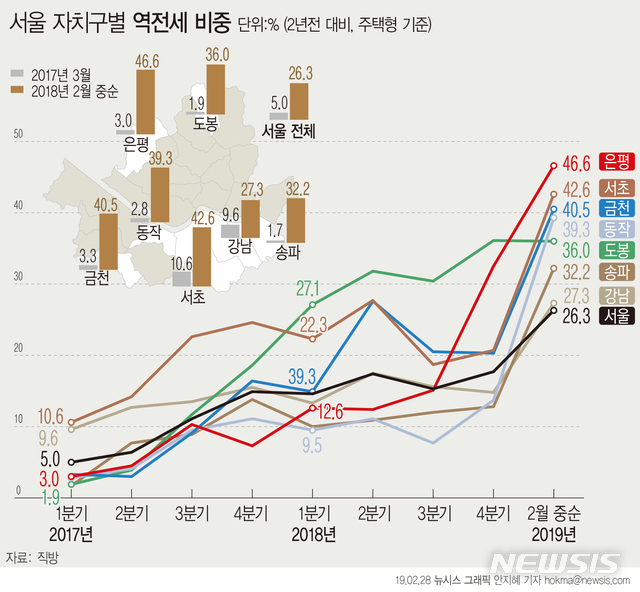 [그래픽]서울 자치구별 역전세 비중