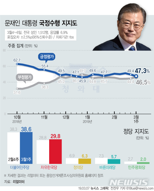 [그래픽]文대통령 지지율 47.3% (리얼미터)