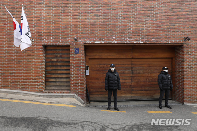 【서울=뉴시스】이윤청 수습기자 = 9일 서울 강남구 이명박 전 대통령 사저의 문이 굳게 닫혀있다.