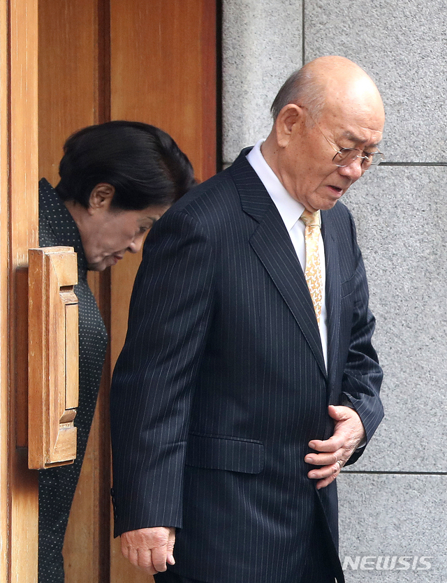 【서울=뉴시스】김병문 수습기자 =전두환 전 대통령과 부인 이순자씨가 광주지방법원에서 열리는 고 조비오 신부에 대한 사자명예훼손 혐의 관련 재판 출석을 위해 11일 오전 서울 서대문구 자택을 나서고 있다. 2019.03.11.