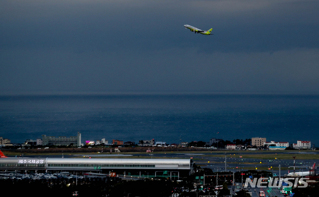 '윈드시어 특보 제주공항, 재이륙하는 항공기'