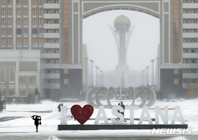 【누르술탄=AP/뉴시스】카자흐스탄 수도 '아스타나(Astana)'가 23일 '누르술탄(Nursultan)'으로 정식 개명됐다. 30년간 장기 집권한 끝에 자진 사임한 누르술탄 나자르바예프 전 대통령의 이름을 딴 것이다. 지난 2017년 1월 25일 눈 덮힌 '아스타나' 도심 전경. 2019.03.23