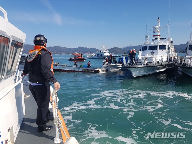 이날 통영해양경찰서는 구조신고를 받고 50t급 경비정 2척, 구조대, 통영파출소연안구조정을 즉시 현장으로 이동시켜 구조하고 있다.2019.03.24.(사진=통영해경 제공)