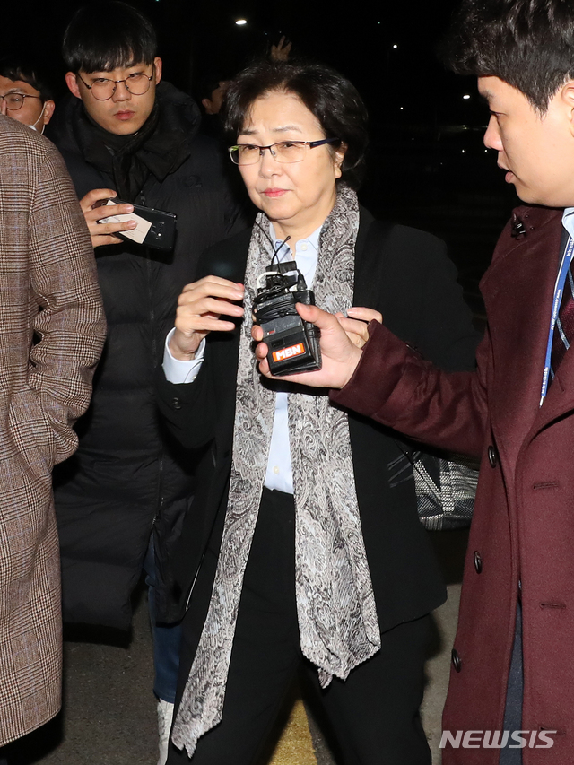 【서울=뉴시스】박주성 기자 = '환경부 블랙리스트' 사건으로 검찰이 김은경 전 환경부 장관에게 청구한 구속영장이 기각되어 26일 오전 김 전 장관이 서울 송파구 서울 동부구치소를 나서며 취재진의 질문을 받고 있다. 2019.03.26.