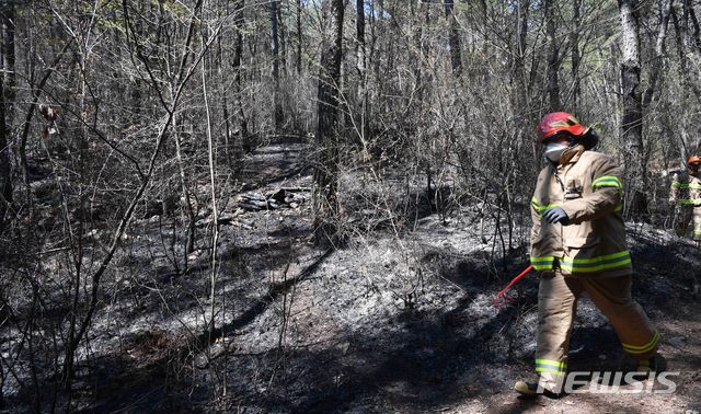 부산소방재난본부는 산불 발생 18시간 만인 이날 오전 9시 10분께 초진을 완료하고, 잔불정리작업을 펼치고 있다고 밝혔다. 2019.04.03.