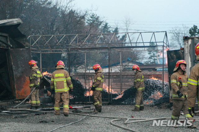 【속초=뉴시스】김태겸 기자 = 지난 4일 오후 7시17분께 강원 고성에서 발생한 산불은 동시 다발적으로 번지면서 5일 현재 고성과 속초 야산과 일부 도심지역에서는 여전히 진화 작업이 한창이다. 사진은 속초시 영랑호 인근 마을. 2019.04.05.