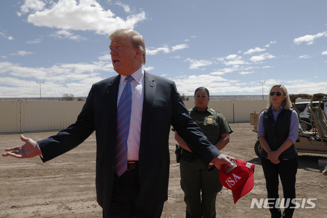 멕시코 국경장벽 둘러보는 트럼프 대통령