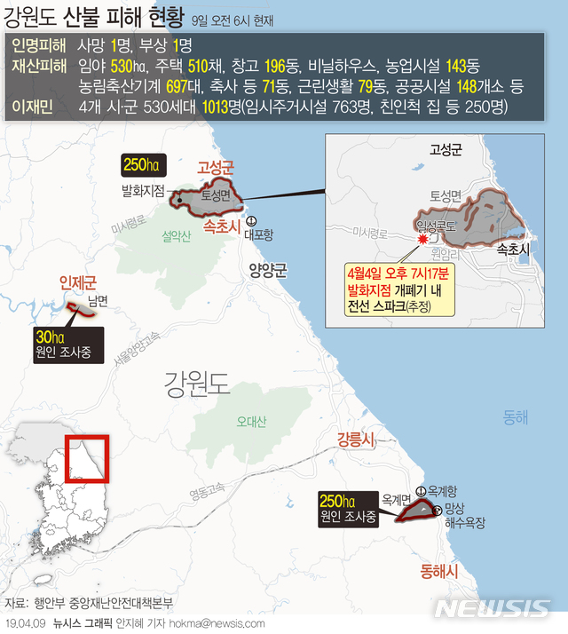 [그래픽]강원산불 이재민 1천여명…주택·시설 2112곳 피해