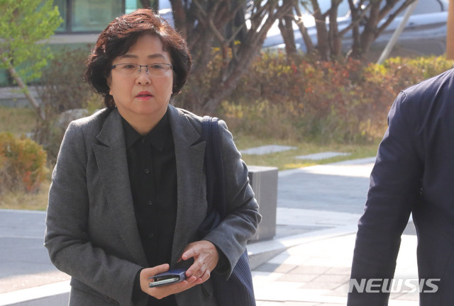 【서울=뉴시스】배훈식 기자 = '환경부 블랙리스트' 의혹을 받는 김은경 전 환경부 장관이 12일 오전 서울 송파구 서울동부지방검찰청에 출석하고 있다. 2019.04.12.