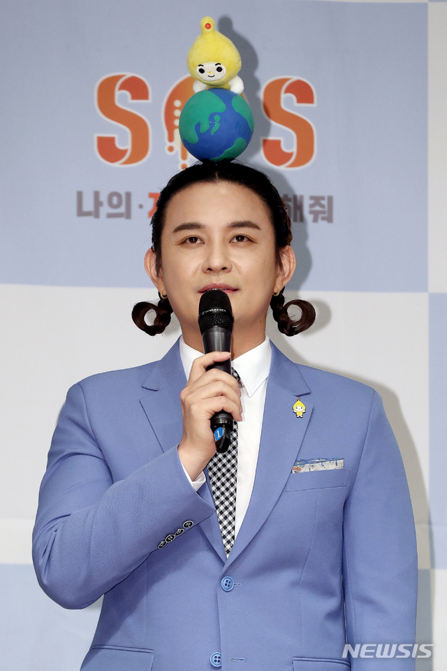 【서울=뉴시스】김병문 수습기자 = 가수 노라조 조빈이 12일 오전 서울 중구 한국프레스센터에서 열린 '환경부 기후변화 홍보대사 위촉식'에 참석해 소감을 밝히고 있다. 2019.04.12.