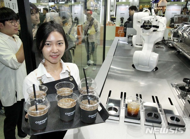 로봇 바리스타가 내린 "갓 내린 커피 드세요"