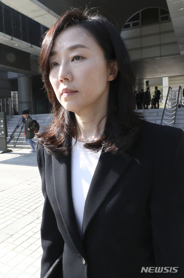 【서울=뉴시스】최진석 기자 = 조윤선 전 문화체육관광부 장관이 12일 오후 서초구 서울고법에서 열린 '화이트리스트' 관련 항소심 선고 공판에서 징역 1년에 집행유예 2년의 실형을 선고 받은 뒤 법원을 빠져나가고 있다. 2019.04.12.