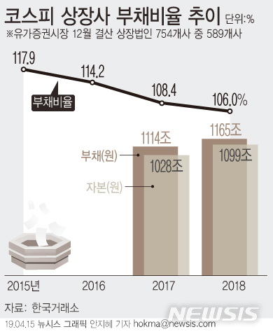 [그래픽]코스피 상장사 부채비율 105.96%…전년比 2.5%↓