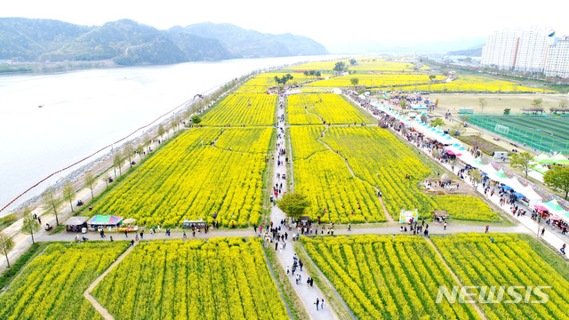 【창녕=뉴시스】안지율 기자 = 경남 창녕군 남지읍 낙동 강변 유채단지에서 열린 제14회 창녕낙동강 유채축제 4일째인 14일 샛노란 유채꽃 물결이 장관을 이루고 있다. 2019.04.15. (사진=창녕군 제공)