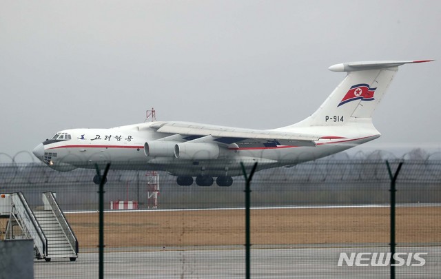 【블라디보스토크(러시아)=뉴시스】이영환 기자 = 북-러 정상회담을 앞둔 23일 오전(현지시각) 러시아 블라디보스토크 공항에 북한 고려항공 수송기 P-914가 도착하고 있다.  2019.04.23.