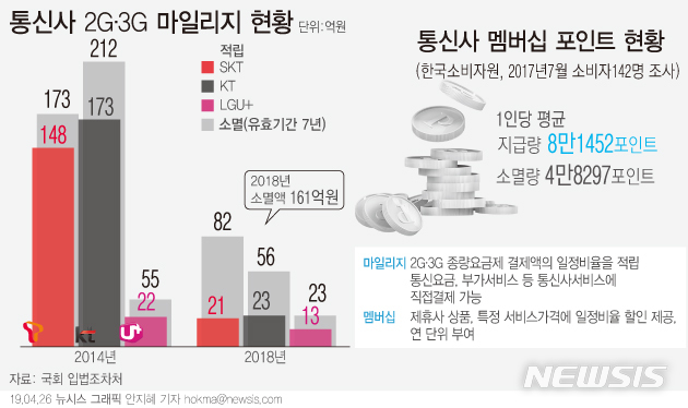 [그래픽]지난해 통신사 마일리지 161억 소멸