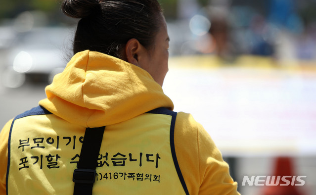 이날 권미화씨를 비롯한 세월호 유가족들은 검찰에 세월호 참사 특별수사단을 설치하고 철저한 진상규명과 책임자 처벌을 요구하는 피켓팅 시위를 열었다. 2019.04.27.
