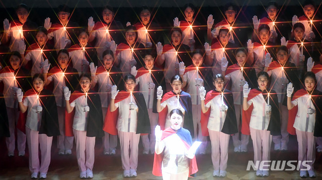 【부산=뉴시스】 하경민 기자 = 30일 오후 부산 사상구 동서대 소향아트홀에서 열린 '제8회 간호학과 나이팅게일 선서식'에 참여한 간호학과 3학년 학생 64명이 촛불을 들고 나이팅게일 선서를 하고 있다.