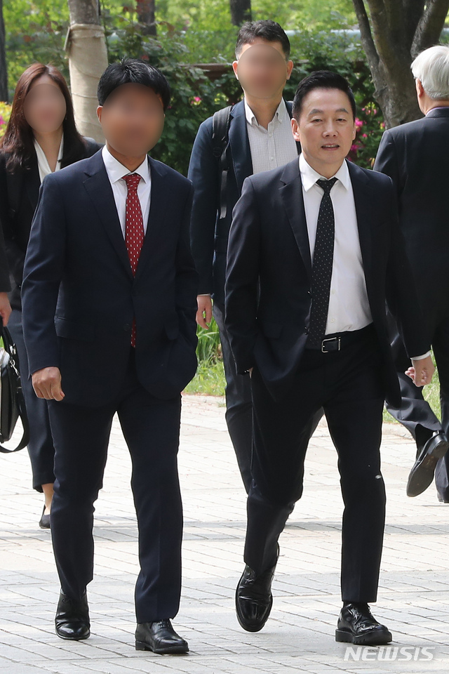 【서울=뉴시스】이윤청 수습기자 = 성추행 의혹 보도에 대해 허위라고 주장하다 명예훼손으로 고소당한 정봉주 전 의원이 3차 공판준비기일인 1일 오전 서울 서초구 서울중앙지방법원으로 출석하고 있다. 2019.05.01.