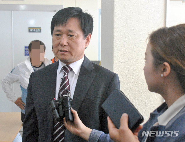 【상주=뉴시스】박홍식 기자 = 황천모 경북 상주시장이 10일 오후 공직선거법 위반 사건에 대한 1심 선고공판을 받기 위해 대구지법 상주지원 법정으로 들어가기 전 취재진과 인터뷰 하고 있다. 2019.05.10