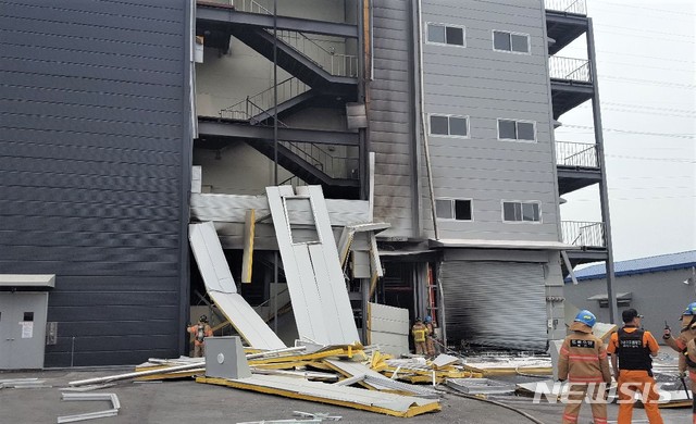 【제천=뉴시스】이병찬 기자 = 13일 오후 2시29분께 충북 제천시 왕암동 제2산업단지 내 화공약품 취급 공장에서 폭발 사고가 발생했다.2019.05.13.(사진=제천소방서 제공)