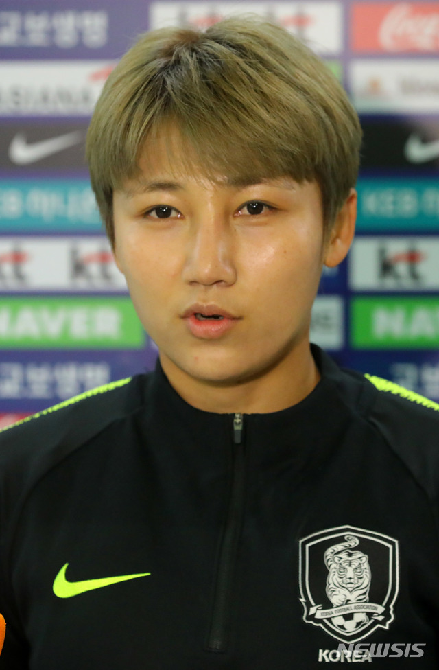 【파주=뉴시스】배훈식 기자 = 2019 피파 프랑스 여자월드컵 대표팀 여민지가 13일 오후 경기 파주시 파주NFC에서 취재진의 질문에 답하고 있다. 2019.05.13. [email protected]