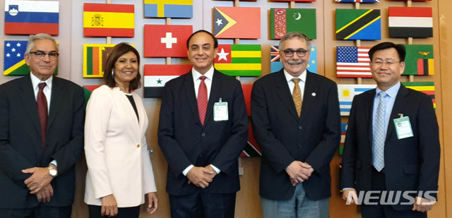 【서울=뉴시스】 추상철 기자 =15일(현지시각) 이탈리아 로마에서 열린 국제연합식량농업기구(FAO) 토양침식 국제회의에 참석한 김경규 농촌진흥청장이 기념촬영을 하고 있다. 2019.05.15. (사진=농촌진흥청 제공)